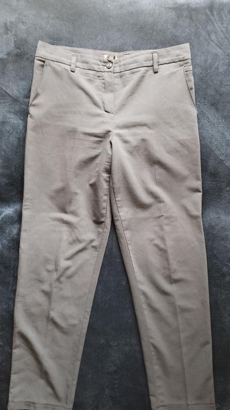 Классические темно синий, слегка зауженные брюки со скошенными карманами. Довжина 95, ПОТ 41, ПОС 52см. Тканина не стрейчева.