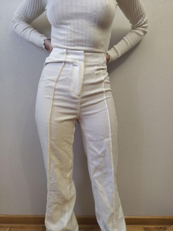 Брюки белые в идеальном состоянии. Идут на размер Xs-XXS. Замеры модели: Под грудью - 69 см Грудь (по самым выступая точкам) - 80 см Талия - 61 см Седницы (по самым выступающие точкам) - 93 см Носит размер Xs-S