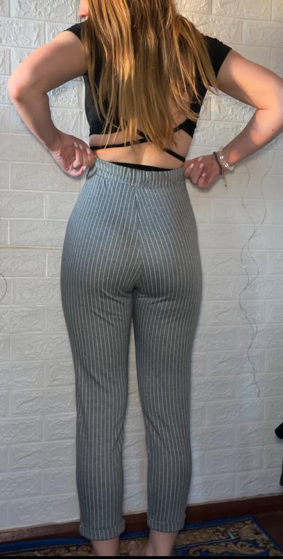 Продаю стильные брюки в сером цвете с белой вертикальной полоской, размер 34. Очень комфортные, эластичные, красиво облегают фигуру. Имеют карманы, длина чуть выше лодыжки - идеально подходят для весны и лета. Состояние отличное, без каких-либо дефектов.