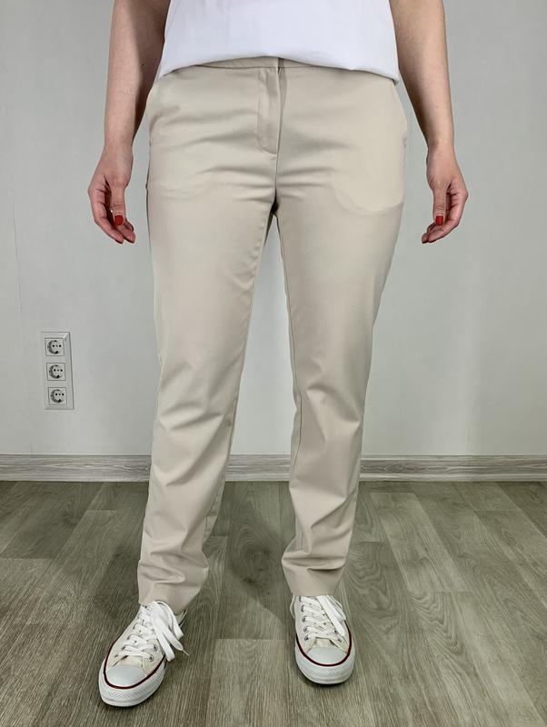 Брюки бежевого цвета от H&M Размер 40Л В составе 33% вискоза, 4% эластан, 63% полиэстер Длина 96 см, полуобхват талии 41 см, полуобхват бедер 52 см Состояние идеал