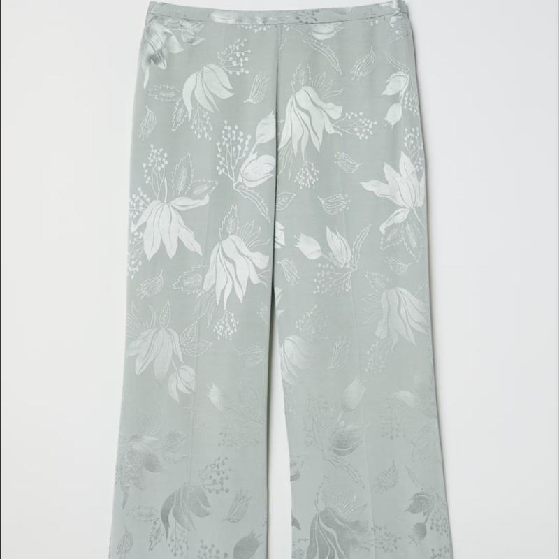 очень красивые брюки h&m, вискоза, снизу на штанинах вышивка бисером, новые.