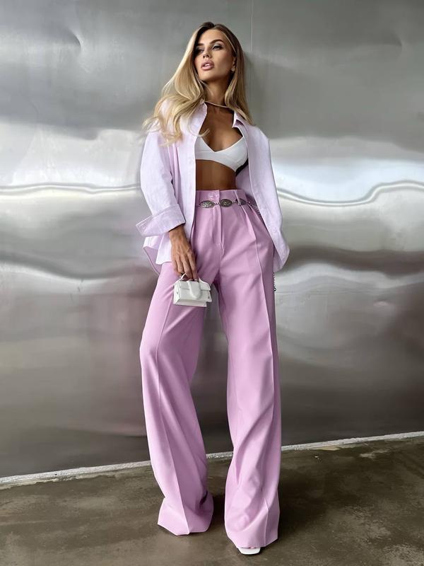 537 Базові брюки-палаццо стануть ідеальним доповненням твоєї весняної капсули. Ззаду на резинці, тому ідеально сідають на будь-яку талію Кольори: чорний, графіт, бордо, рожевий, лимонний, білий Розміри: 42-44, 46-48 Тканина: костюмка