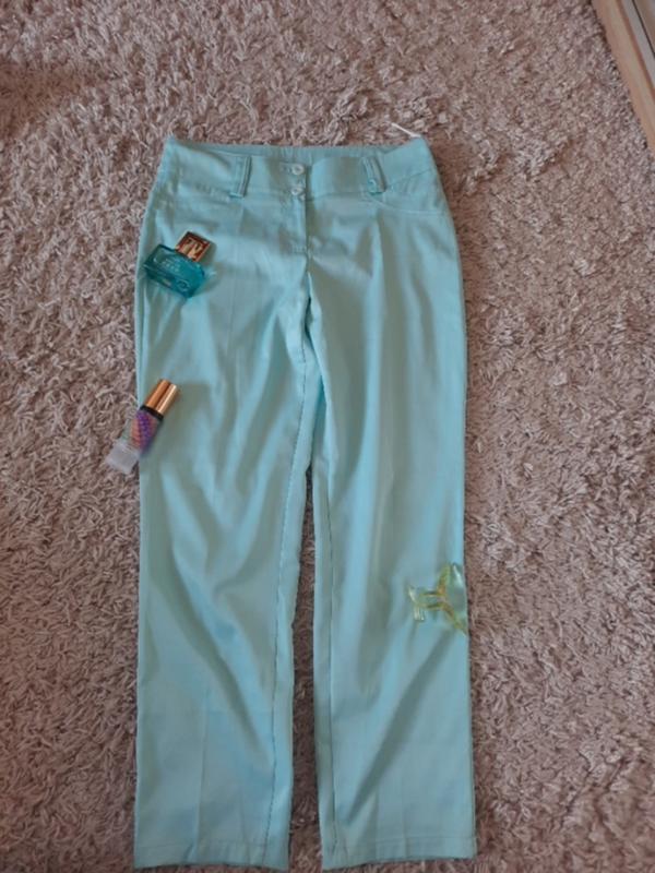 штани ідеал фото "крапочок" як нюанс (останнє фото), можна попробувати вивести має шпульки на пояс колір блакитної лагуни, дуже ніжний ідеал весна/літо майже не одягалися, як нові без кишень (є накладні, для дизайну) на змійці розмір 38