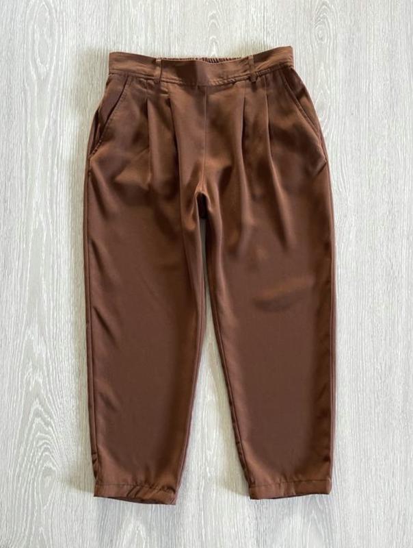 Нові брючки з кишенями. Розмір 14.42. Довжина 87, внутр 60 см. Напівобхват талії 38-48 см. Напівобхват стегон 60 см. Посадка 34 см. Поліестер.