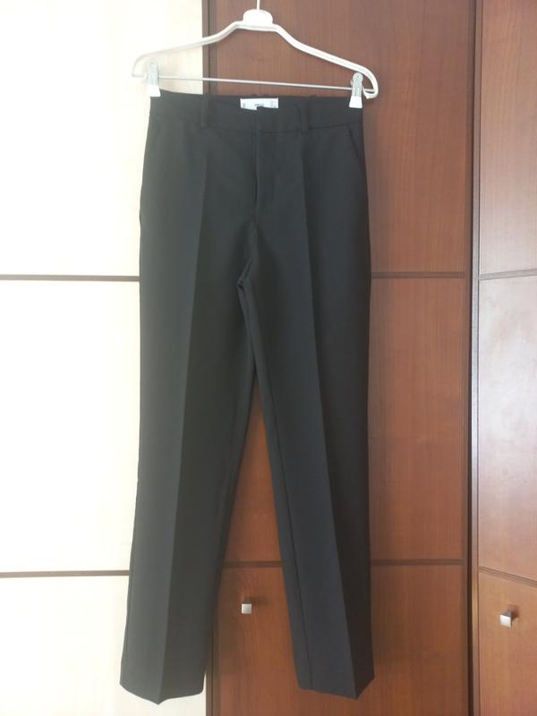 классические прямые брюки со стрелками, по бокам есть карманы. Длина по внешнему шву 97 см, длина по внутреннему шву 70 см, ПОТ 34 см, ПОБ 42 см, от талии до паха 30 см.