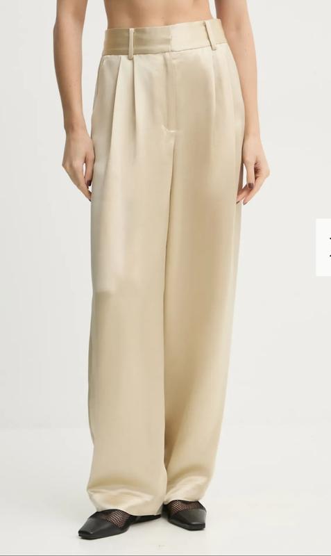 П. Стильные женские брюки лён 25% ацетат58%лиоцет17% бежевого цвета ,широкого крою.Довжина 101см, ширина штанини понизу 29см.