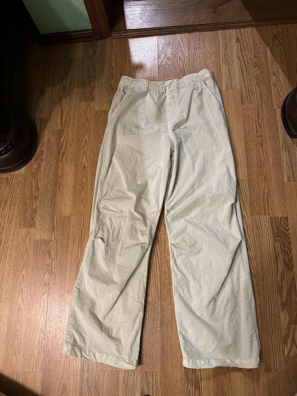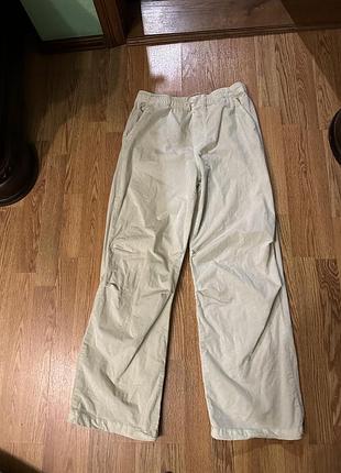Брюки парашюты молочного цвета высокая посадка с карманами боковыми. Ткань мирковильвет. Интересный фасон со складками на коленях. Тягнуться. Длина 102 см полуобхват ПОТ 38 посадка 30/33 см