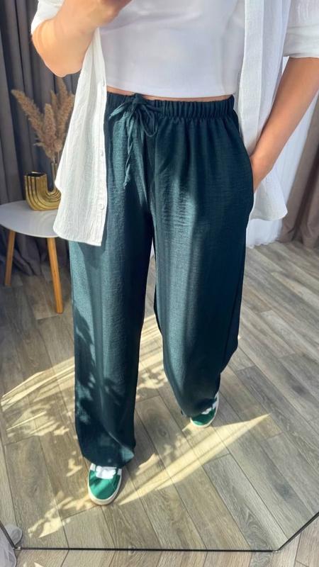 Штани Арт 33 Тканина льон бохо Колір чорний, шоколадний, смарагдовий, мокко Розмір 42,44,46,48,50,52,54,56 Штани вільного крою, з кишенями, талія на резинці, середня посадка