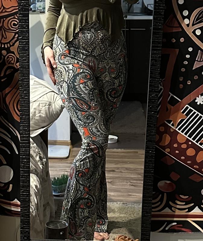 Яскраві бохо штанці, кльош🌎 Вдягнуто на параметри 101/73/103, зріст 172, вага 77. Чудово сяде на високих дівчат, тягнуться🤍