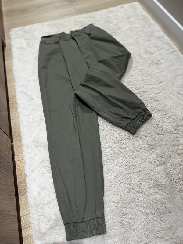 Штани карго в розмірі S.Стан нових. Мають кишені спереду і ззаду.на поясі резинка .Можуть бути на невелику М-ку.Колір оливковий.Тканина щільна,приємна до тіла. На зріст не вище 165 см.Відправка щодня