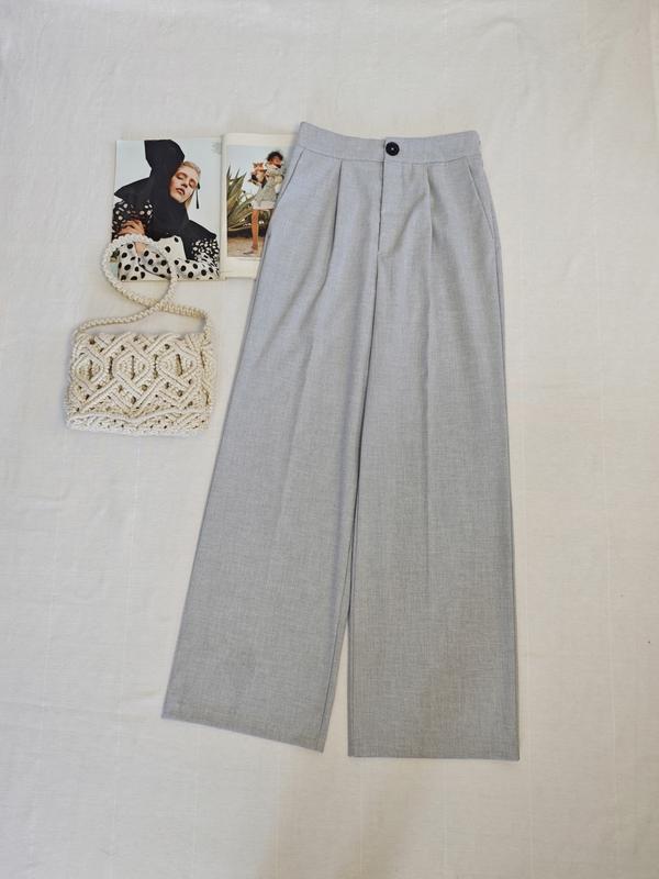 🌿широкие серые брюки ***@******** высокой посадки с боковыми карманами Размер:36 Замеры:ПОТ 35 см, ПОБ 51 см, длина 108 см