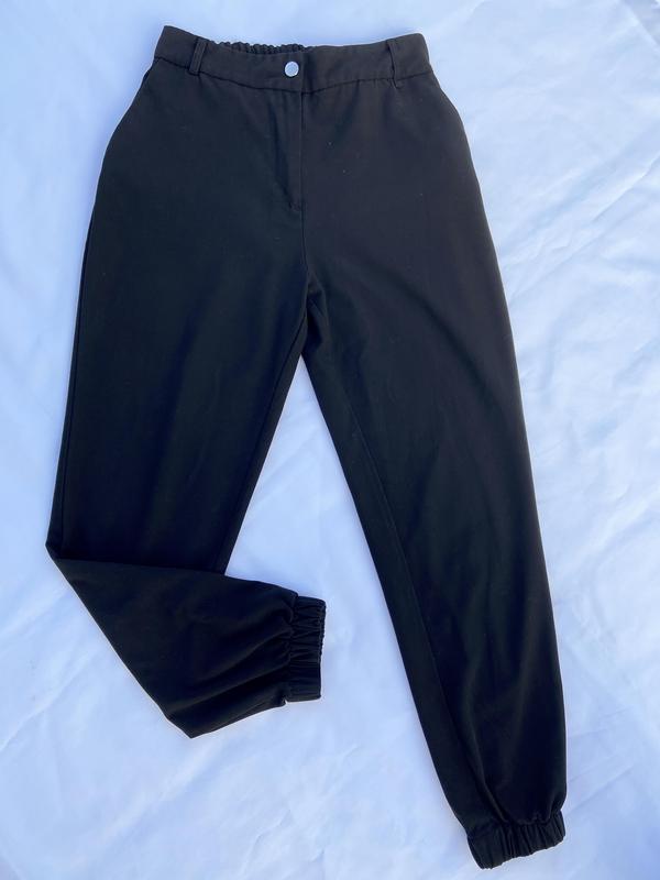 Черные брюки. Стан идеален. Ориентировочно подойдет на размер С - М, но лучше смотрите на замеры. Замеры: Полуобхват талии – 34 – 40 см. Полуобхват бедер - 51 см Длина - 95 см. Посадка спереди – 29 см Посадка из зади – 39 см