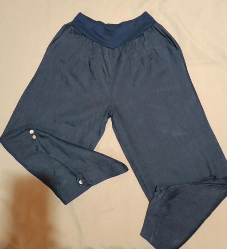 длина с резинкой на поясе 106 внутренний шов 68 посадка 37/45 два рабочих кармана бирок с составом ткани нет уверена что лён состояние идеальное 5 производство Италия. бого стиль.