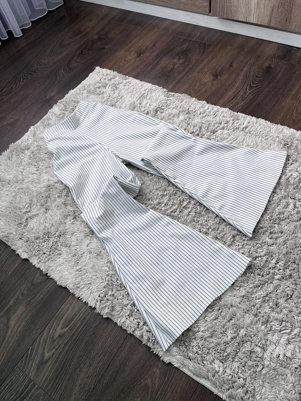 Штани в полоску розмір s. Є один дефект - це обрізані знизу, видно на фото, в очі не кидається.