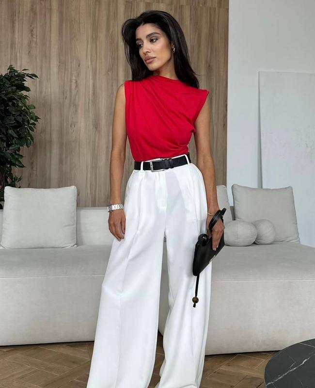 ▪️мод 361-844 ▪️тканина : костюмка ▪️цвет: молоко ▪️размеры: SM / ML Брюки палаццо; Высокая посадка, с карманами; Длина брюк 110 см Размеры SM | ML Талия: 60-66см | 65-73 см Стегна : 88-94 см | 95-99 см