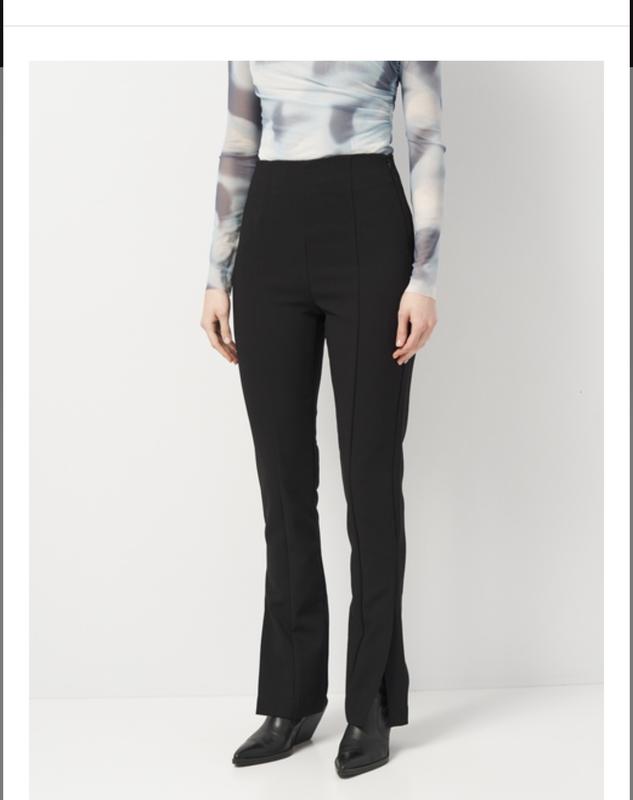 Обтягуючі брюки із костюмної ткані, плотні, гарно сідають по фігури, довгі. розмір ххі-хс талія максимум 62 бедра 91 максимум гарно будуть виглядати на ще менші параметрів По бірці хс Довжина 112