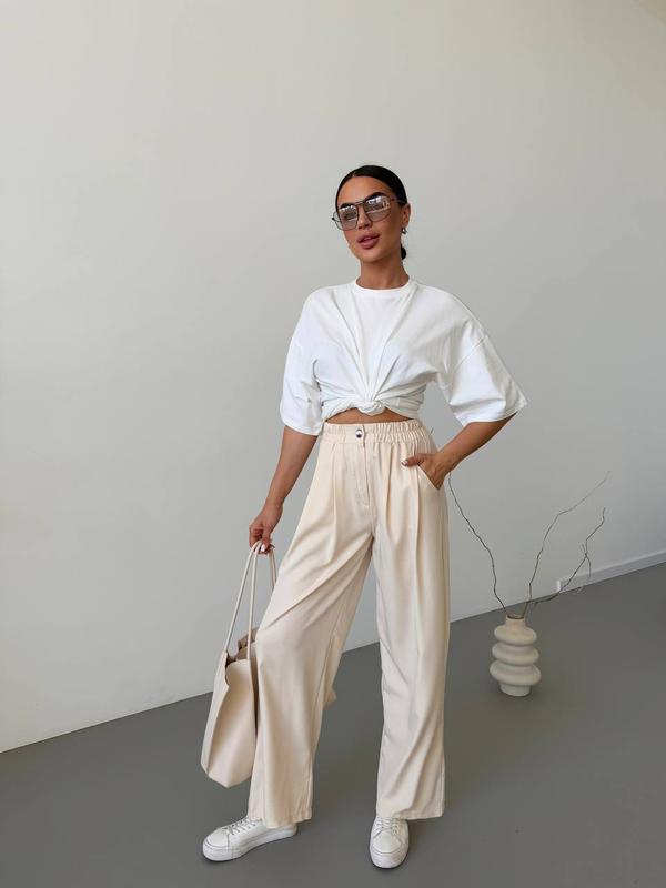 Штани Мод 001 ▪️Тканина: Kivi ▪️Размер : 42-44, 46-48 ▪️Цвет: айвори, черный, графит, бургунди Легкие и удобные брюки свободного кроя из легкой дышащей ткани - идеальный вариант на весну и лето.