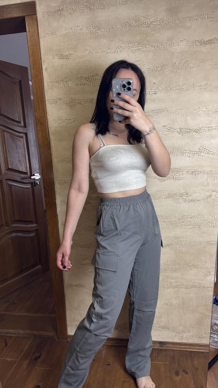 Штани сірого кольору Нові, з біркою С НО в поясі 32 (ще тягнуться) довжина 109
