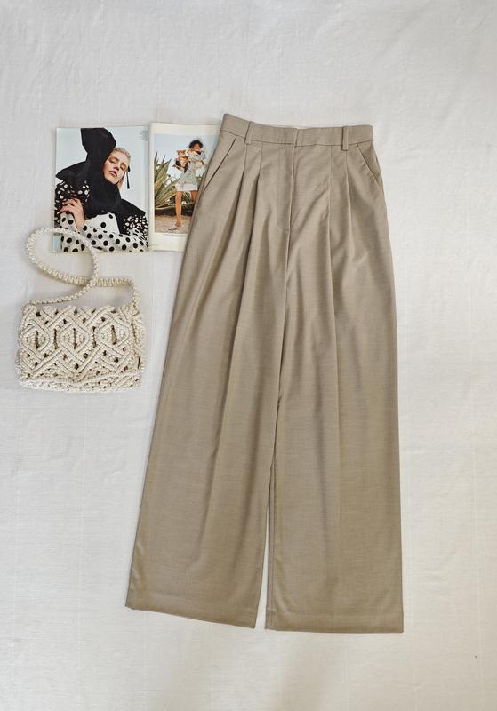 🌿широкие брюки H&M высокой посадки с боковыми карманами, ткань костюмная Размер:36 Замеры:ПОТ 34 см, ПОБ 53 см, длина 106 см