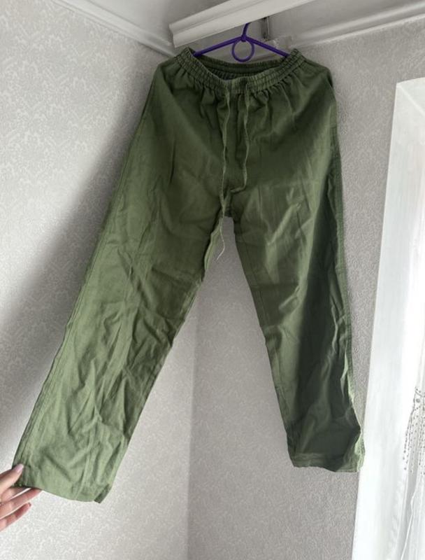 Зелені лляні штани Довжина-99 Шаг-70 Пт-31, але на резинці Пб-51 Розмір с-м