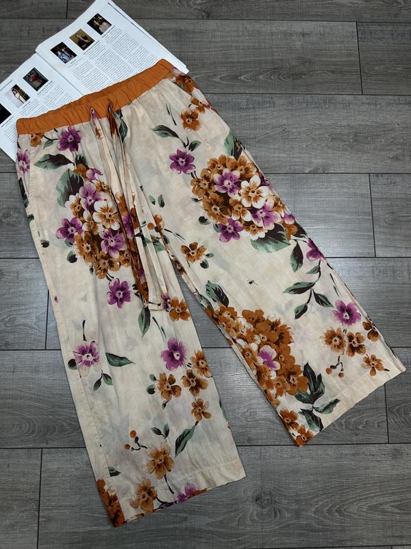 Модель : фірмові легкі літні брюки в квітковий принт Twinset Twin-Set. Розмір : S Стан: ідеальний Склад : 100% бавовна Заміри: довжина 84 см, ширина пояса 36 см( резинка), ширина бедра 53 см, посадка спереду 28 см, ззаду 33 см, КРОК 58 см, ширина штанини зверху 31 см, знизу 28 см Ціна: 899 грн