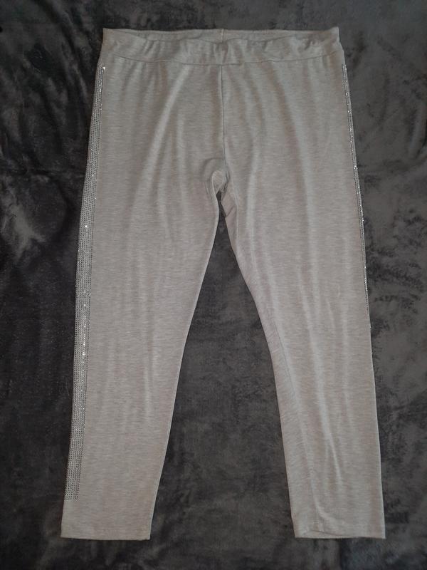 Размер XL, смотрите замеры. Ткань в виде футболки, тонка, хорошо тянется, 60% полиэстер, 35% вискоза, 5% эластан. Цвет светлый серый. Состояние очень хорошее, есть кашлатость - не критически. длина по боковому шву 98, по внутреннему 70. полу охват в поясе 51 тянется к 69. полуобхват бедер 59 тянется к 69. полуобхват брючины сверху 33. высота посадки от шва развелки до верхней точки пояса спереди 31. высота посадки сзади 36. 19