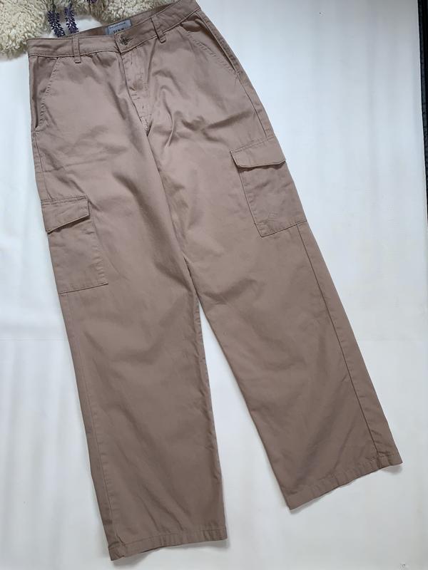 Стан відмінний Розмір по бірці зазначений , як підлітковий -15 років , 170 см Реально підійде на S , щоб носити вільно на стегнах, або на М - орієнтир на заміри Напівобхват поясу 38-40 см Стегон 53-54 см Довжина 107 см Крокова довжина 78 см Глибина посадки спереду 33 см, ззаду 39 см Ширина брючини внизу 24 см 100% бавовна