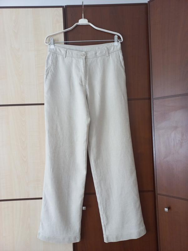 Льняные брюки прямого кроя, бренд East. Длина по внешнему шву 102 см, длина по внутреннему шву 75 см, ПОТ 39 см, посадка средняя, ПОБ 48 см