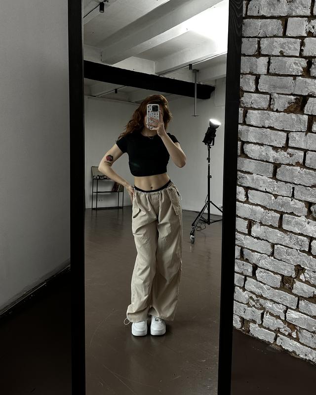 Штани карго беж кольору. Нові. є розмір S і М параметри : розмір S (талія 62-75, бедра 90-108, довжина 94) розмір М (талія 64-72, бедра 108-110, довжина 95) але вони тягнуться за рахунок резиночок на талії і знизу, тому і на XS буде супер!