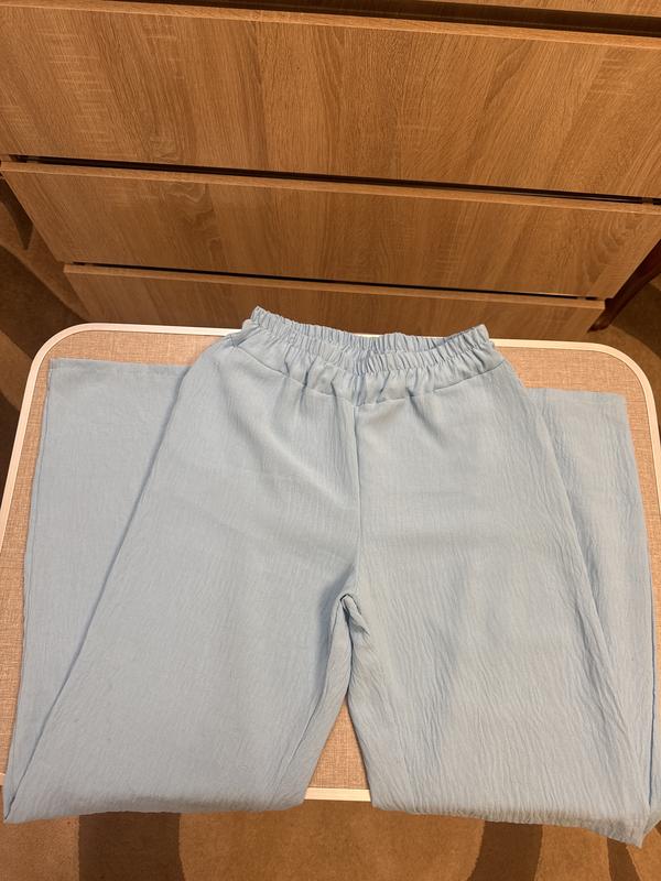 Цвет - голубой Размер 44 - 46 Замеры: Длина 105 см В талии на резинке 30 см еще потянутся максимум до 46 см В стегнах 50 см