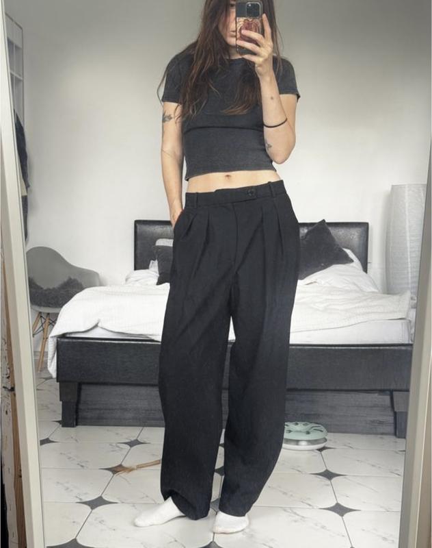 Широкі брюки зара. Шерсть + поліестр Шикарно виглядають. Було два прання після покупки.