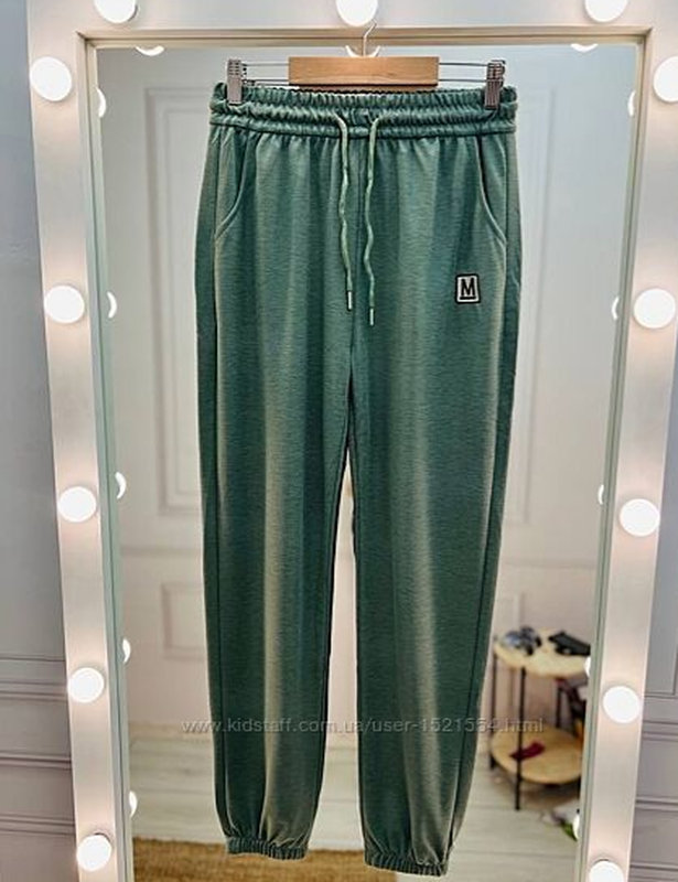 спортивно-прогулочные штанишки Турция фабрика хлопок с эластаном лейба вышитая 10х \ на 52-54 \ ОЛИВА длина 110 см посадка 36 см бедра 116-124 см увага! отправка нп\ укрпочтой