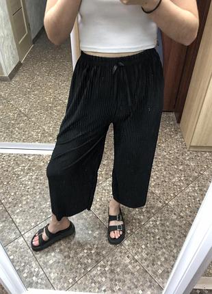 Штани кюлоти, якщо невелики ріст можуть бути як палаццо, з легкой блискучої тканини плісе, спереду бантик, на резинці, розмір Хс-С-М