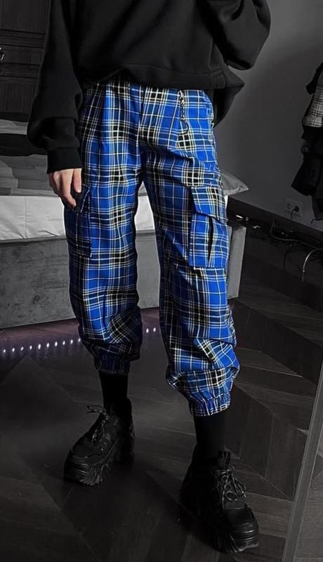 Очень классные брюки карго в клетку от Bershka полуобъем талия 30см(+ще тянется, сзади на резинке) полуобъем бедер 48см длина 89см внутренний шов 63см