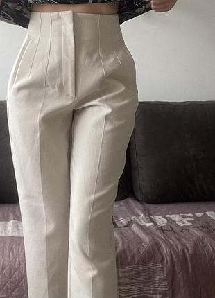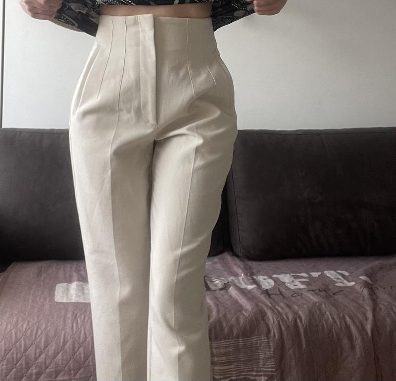 Жіночі брюки Zara, розмір S Молочного кольору, Висока посадка довжина 98 см, шагова 66 см Ширина по поясу 33 см, в районі бедер 47 см На фото мій зріст 163 см