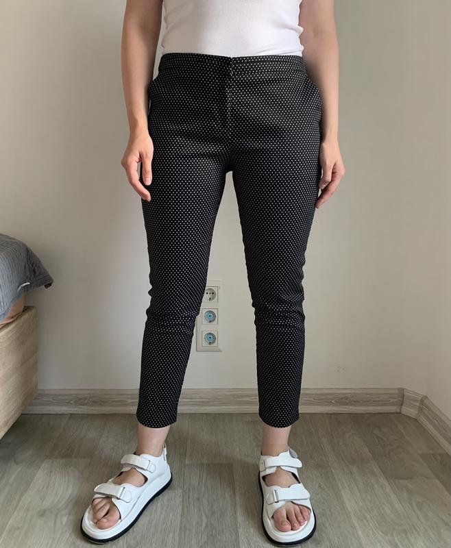 Класні штанці у розмірі 42(Л) 97% катон, стан ідеальний На середній посадці Довжина 90 см, напівобхват талії 44 см, напівобхват стегон 52 см