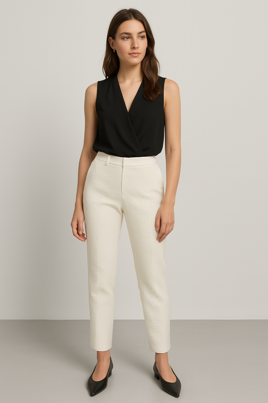 Очень красивые белые/молочные/экрю штаны, Брюки прямого кроя, с карманами. Премиальный бренд Jaeger. Интересная структура ткани. Имеет кармашки по бокам. Есть подкладка ПОТ 41 ПОБ 53 Длина по боковому шву 95 Длина по внутреннему шву 68