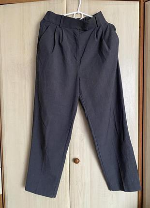 Дуже стильні брюки в ідеальному стані! Під кеди , лофери … можна одягати на любу подію😊З цими штанами можна скласти кучу луків. По бірці 8(s) Талія-33см (ззаду резиночка) Супер висока посадка-38см Довжина -97см