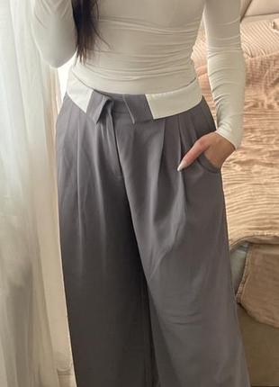 Серые,широкие брючки-палаццо на высокой посадке,класс Люкс в состоянии новой вещи.Размер L. Пояс 37-39 Длина 104 Отправка после полной оплаты на карту,наложки и возврата временно нет.