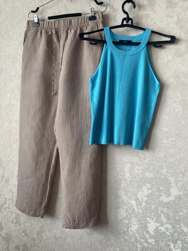Брюки НМ, 45% льон , розмір М , будуть на L, XL, Пот 40 , куліска , поб 55, довжина 98, і майка CA, тягнеться , ціна за все 699грн