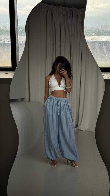 📝Арт: 4959-510 штани ▪️тканина : жатий льон ▪️цвет: мокко, голубой, белый ▪️размеры: SM / ML Трендовые брюки аладины Легкая и приятная ткань. Размеры SM | ML Талия: 58-65см | 65-74 см Бедра : 88-94 см | 95-101 см