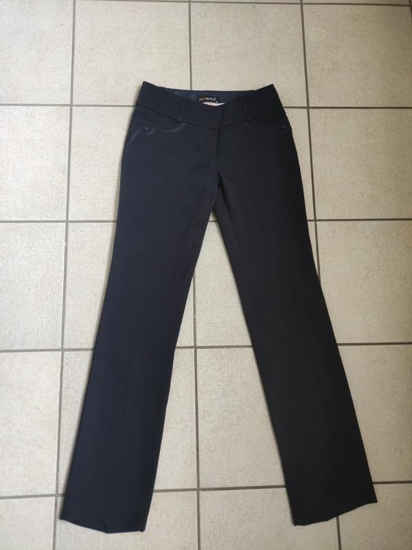 Темно синие классические брюки на стрелку прямого силуэта идеально в школу р.36 (s) высоко...