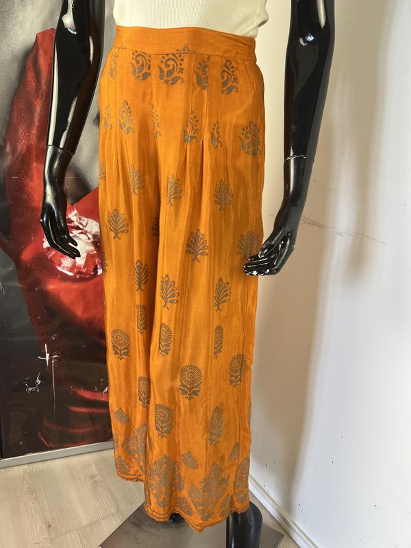 Склад 100% віскоза Розмір М Талія по спинці на резинці-36, тягнеться до 41 Бедра-56 Посадка перед-36 Крок-67 Довжина-98 Ширина штанини верх-37 Ширина низу-38
