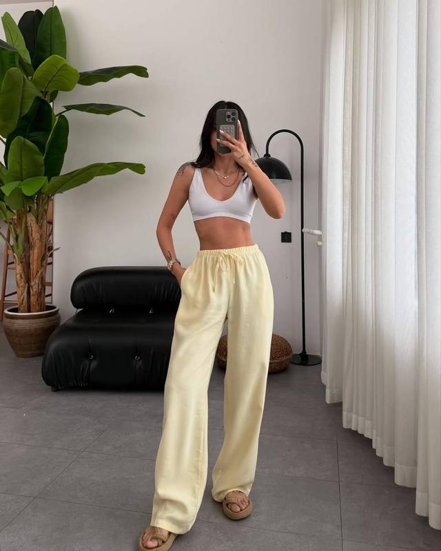 Брюки 🔹Мод: 218 🔹Розмір: 42-44, 46-48 🔹Кольори: жовтий, мокко, чорний 🔹Тканина: льон 🔹Ціна 680 грн. Створено з натхненням❤️саон