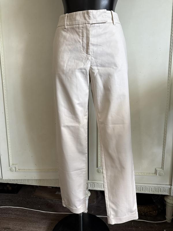 Нові жіночі брюки від Stefanel. Колір айворі(слонової кістки). Склад:котон/елачтан(97/3). Розмір по бірці-44(італійський). Заміри: довжина по зовнішньому боковому шву-94 см, по внутрішньому-69 см, ПОТ-41 см, ПОБ-46 см, напівширина штанини по низу-16 см