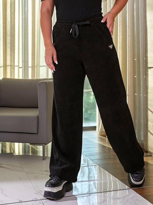 Зручні та стильні брючки палаццо, які ідеально підкреслюють фігуру🤍 Тканина вельвет добре тягнеться, пояс регулюється шнурком, брюки оздобленні стильною фурнітурою з камінчиками 💎 ▫️Код товару: #201 ▫️Кольори: чорний ▫️Роз: 48 | 50 | 52 | 54 ▫️Тканина: стрейч вельвет
