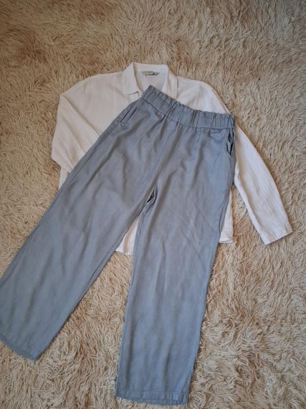 Голубые брюки палаццо,талия на резинке, длина 102см, поб 65см.