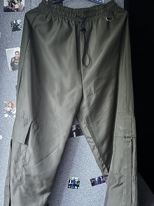 Штани кольору хакі з карманами на рівні колін та затяжками