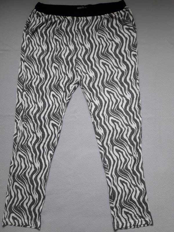 Размер 16/44/XXL Ориентируйтесь на замеры: Полуобхват резинки 43 см + тянется до 66 см ПОБ 62 см Посадка перёд 34 см Посадка зад 45 см Длина штанины по внешнему шву 109 см Длина штанины по внутреннему шву 78 см Ширина штанины вверху 31 см Ширина штанины внизу 18 см Сбоку спереди два кармана Тянутся хорошо Обмена и возврата нет! Важно! Перед покупкой прошу ознакомиться с условиями в разделе "обо мне " https://shafa.ua/member/kkarisha/about