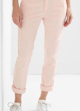 Чіноси від американського бренду GAP. Бездоганна якість GAP, поціновувачами якої є Шерон Стоун, Мішель Обама, Джессіка Альба, та ідеальні лекала. Модель брюк - "girlfriend chino". Сілует, притаманний чіносам - дещо розслаблений, неформальний, з довжиною по кісточку, з боковими кишенями накосу для створення максимального ефекту chill out. Зовні бокові шви декоровані тасьмою в тон брюкам. Брюки можна носити з відворотом та на повну довжину. Колір за біркою бренду "pink cameo" (рожева камея) - неймовірно ніжний рожевий. Ідеально пасують як під балетки і сорочки, так і під кросівки та лаконічні топи. Розмір - 36 (S). Ношу повноцінну M - сіли також добре. Довжина - 91 см. Довжина по кроковому шву - 69 см. Об'єм талії - 80 см. Об'єм стегон - 96 см. Ширина брючини в коліні - 20 см. Ширина брючини знизу - 17 см. Довжина блискавки - 10 см. Тканина - бавовна (97%), еластан (3%). Країна виробництва - Шрі-Ланка. RRP (ціна на сайті виробника) - 55 долл. (орієнтовно 2300 грн).